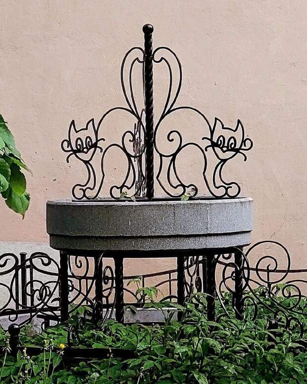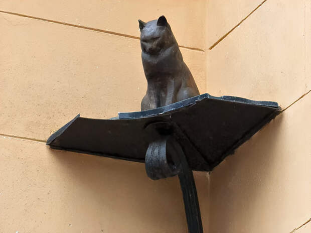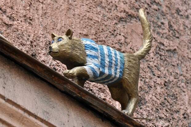 А ещё раньше, в 1999 году, петербургский предприниматель Илья Ботка подарил городу две скульптуры — кота Елисея и кошки Василисы, — приносящие удачу. Они «поселились» на карнизах Малой Садовой улицы.