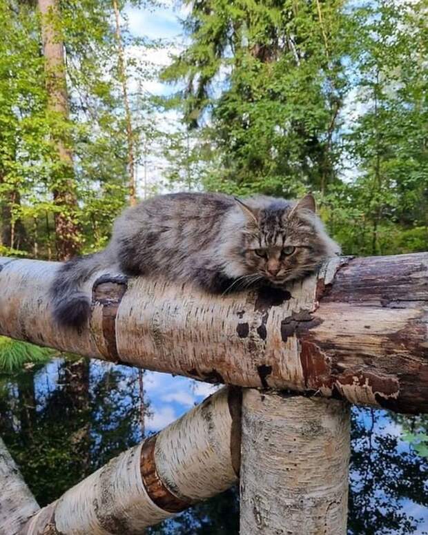 Примерно год назад кот выбрал Музей-заповедник «Парк Монрепо» своим новым домом. Он обосновался в «Хижине Отшельника», название которой оказалось весьма символичным.