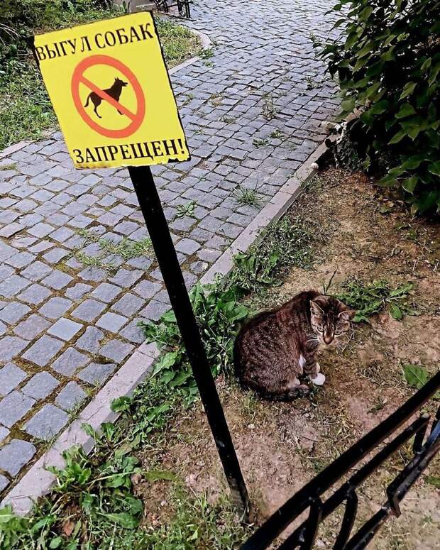 Бывает, что во двор заезжают машины – либо сотрудников, либо ремонтная техника. И тогда табличка служит напоминанием для водителей, чтобы они смотрели внимательнее – не перебегает ли дорогу очередной пушистик.