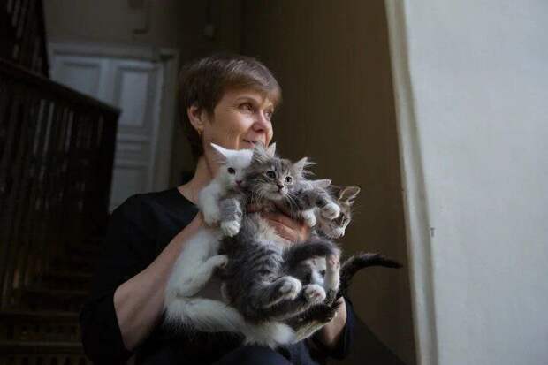 Кошки сюда не заходят. Они живут в двух других комнатах: спят, лазят по лесенкам, забираются в домики. У всех разный характер: одни пугливые, другие ласковые и сами прыгают на колени, третьи равнодушны к гостям и не реагируют на заигрывания. Все они когда-то были бездомными, а сейчас ждут новых хозяев.