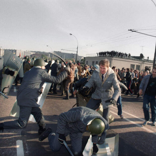 От редакции. В результате этого многочасового боя были подбиты несколько бэтээров и погибли десять человек. Погибшие были награждены высокими правительственными наградами. Даже спустя годы сам факт утренней перестрелки подразделений Министерства обороны и дивизии внутренних войск держится в строжайшем секрете. В центре столицы в течение нескольких часов министр обороны и министр внутренних дел так и не смогли скоординировать действия своих подчиненных. Оба, как вы помните, получили на грудь по "Герою России".