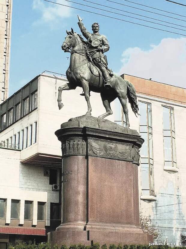 «Выходец из крестьянской семьи, Щорс был организатором и первым командиром Богунского полка, а впоследствии командиром всей дивизии. Его мощная фигура проходит через все походы против петлюровцев и бои с ними.
