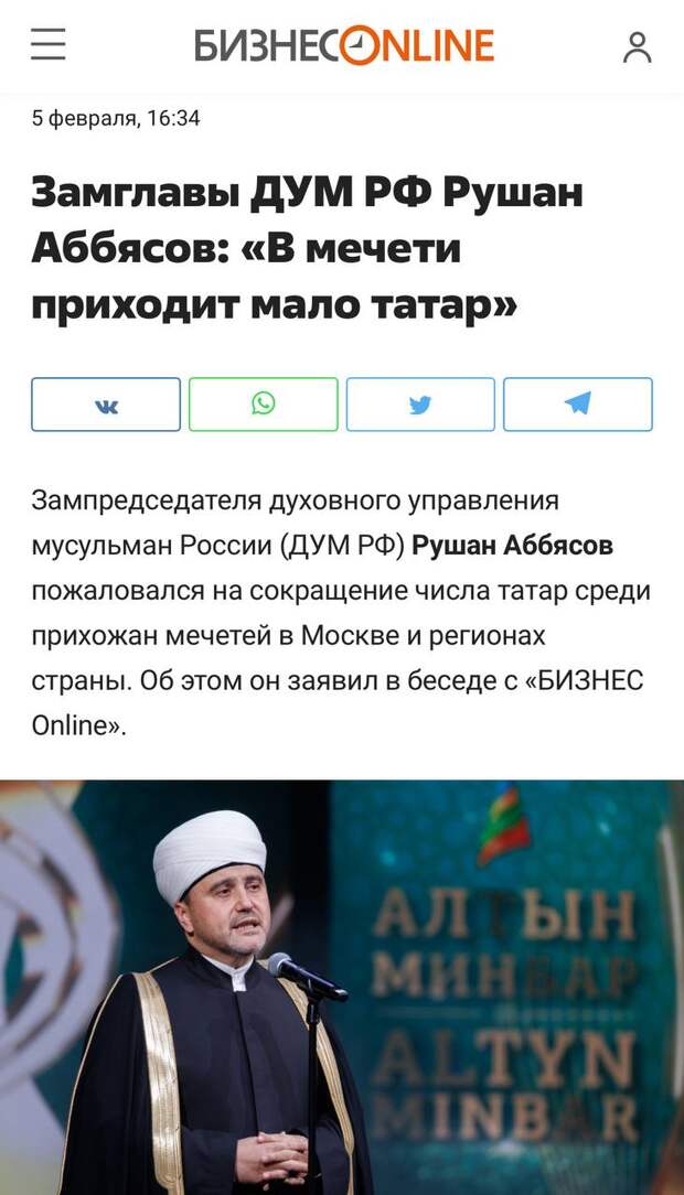 Если кто-то думает, что последствия миграционного беспредела затронули только православных в России, то вы ошибаетесь. Зампред Духовного управления мусульман (ДУМ) России Рушан Аббясов заявил (источник), что в мечетях становится всё меньше местных мусульман, особенно акцентировав внимание на татарах.