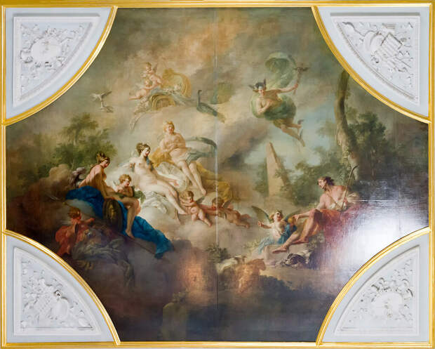 На потолке Парадной лестницы размещен плафон «Суд Париса», выполненный в 1782 году.
