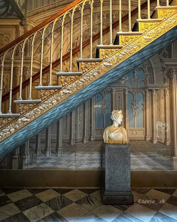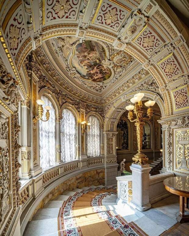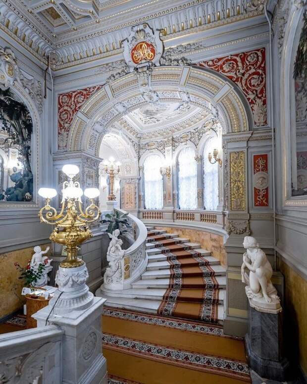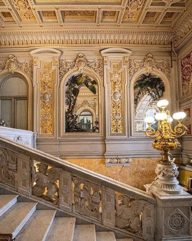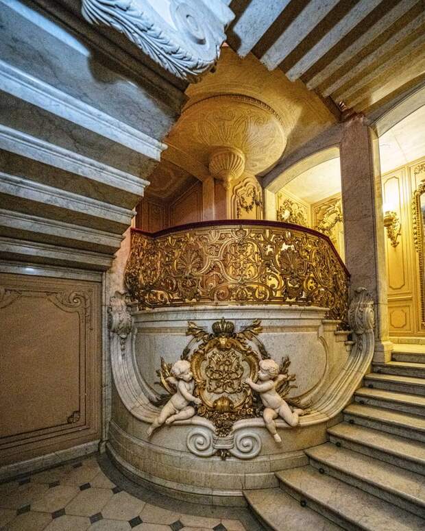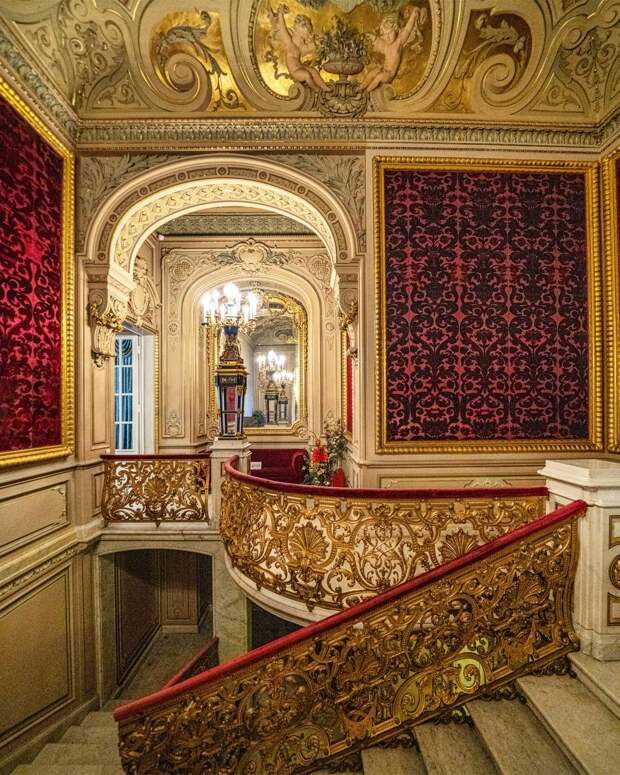 «Золотая лестница» в стиле Людовика XIV появилась во время перестройки дворца в 1883 году. Её автор - архитектор Максимилиан Месмахер.