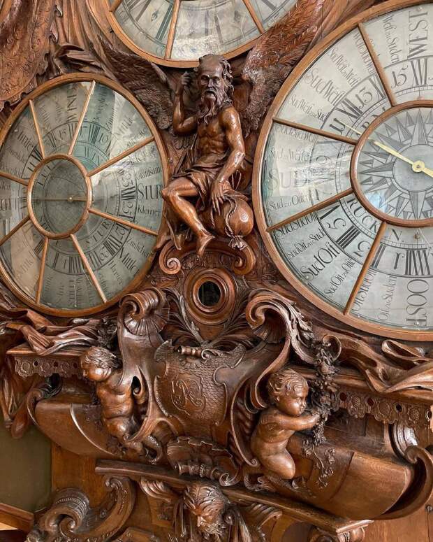 Анемометр объединяет три циферблата: один из них - часовой, другие два - указатели направления и скорости ветра. Стрелки правого и левого циферблатов соединены с флюгером, находящимся на крыше, посредством шахты, прорубленной в стене.
