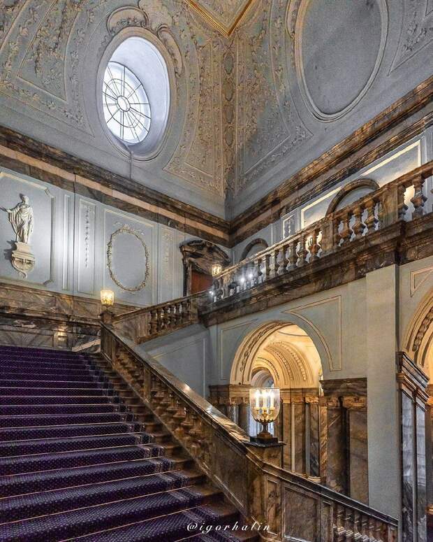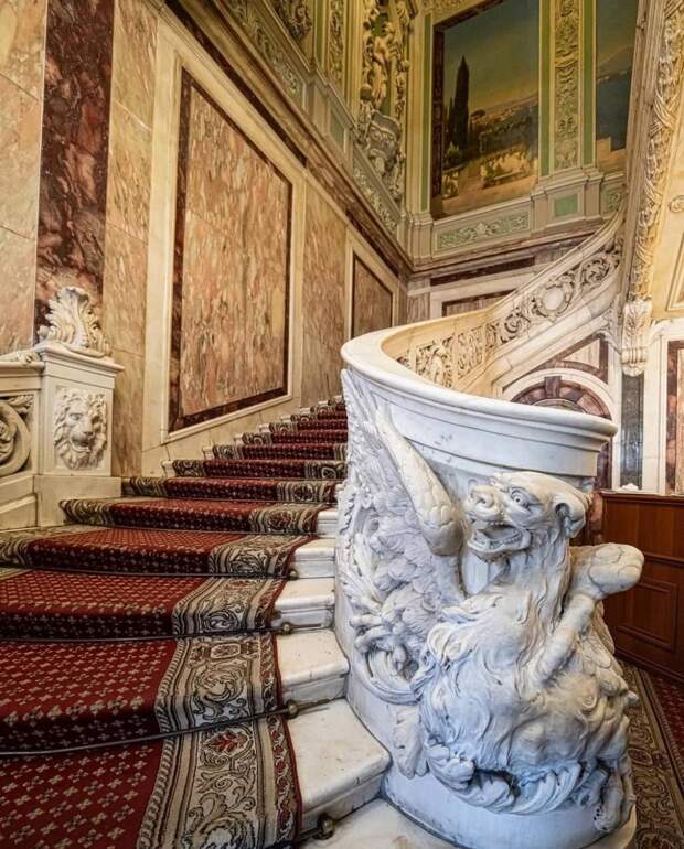 Видимо, дворец готовят к презентабельному виду – возможно, к каким-то важным событиям.Необычная лестница Мариинского дворца. Санкт-Петербург, Россия