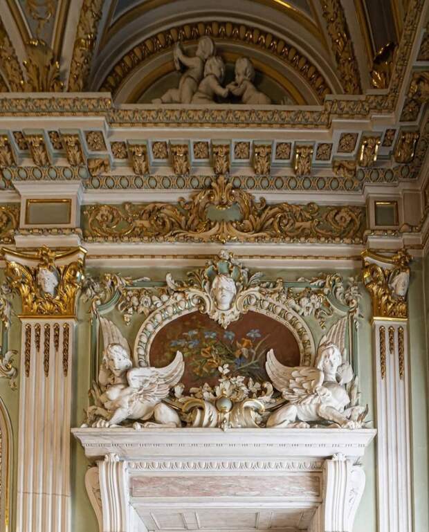 В спальне великой княгини Марии Павловны сохранился необыкновенный камин так изящно расписанный в технике гризайль, что кажется, будто на нём мраморные барельефы.