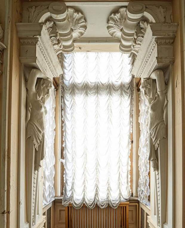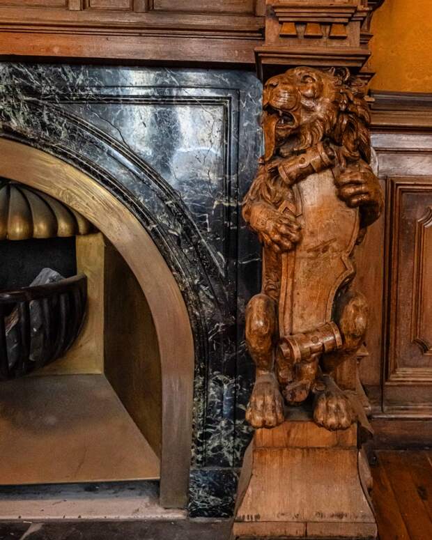 ⠀На фото вы видите также гигантский камин с раковиной, который стоит в огромном бальном зале. Выполнен камин первой профессиональной женщиной скульптором - Марией Диллон. Он называется «Пробуждение весны».