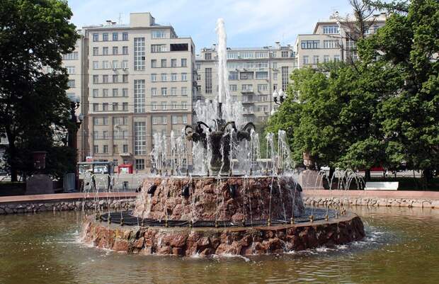 Чем он интересен? А вот чем. Чаша фонтана была отлита из захваченных в годы Великой Отечественной войны трофейных немецких орудий. Его еще и строили пленные немцы, так что трофейный фонтан настоящего немецкого качества до сих пор стоит в самом центре столицы. Одно время он был еще и светомузыкальным, но так как поблизости был плотный поток машин и на улице был большой шум, светомузыку было решено выключить. К слову громкоговорители на осветительных мачтах сохранились до сих пор, но только они не работают.