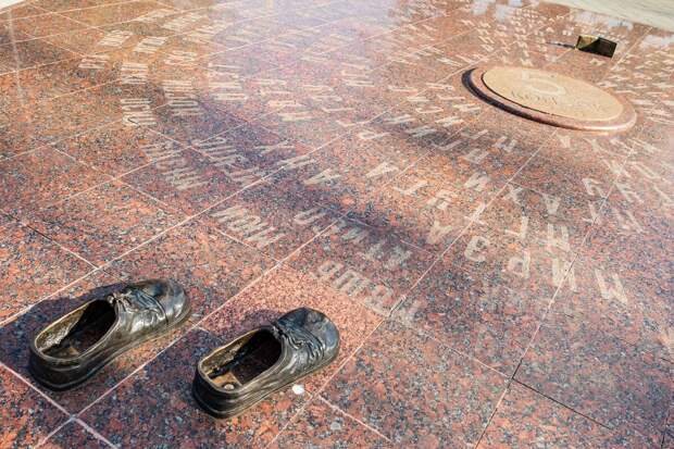 Раньше у памятника было два башмака с двумя пятаками внутри, но сейчас они неизвестно куда исчезли.