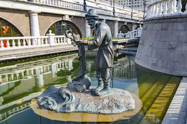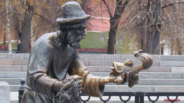 Недалеко от ТК "Охотный ряд" расположена скульптура старика, которому в руки попала говорящая золотая рыбка. В народе ее наделили волшебными свойствами. Говорят, что она исполняет желания, но не больше трех в день, поэтому приходить к героям сказки А. С. Пушкина стоит с утра. В теплое время года, когда фонтаны работают, подобраться к сказочным персонажам может быть непросто, т.к. расположены они на небольшом островке. Но к нему вполне можно перепрыгнуть или просто пройти вброд.