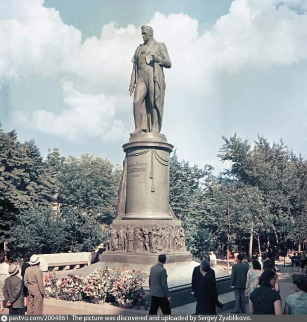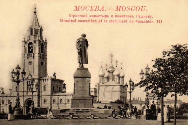 Первоначально монумент стоял вдали от шумной центральной магистрали — Тверской улицы, в тихой глубине одноименного бульвара.