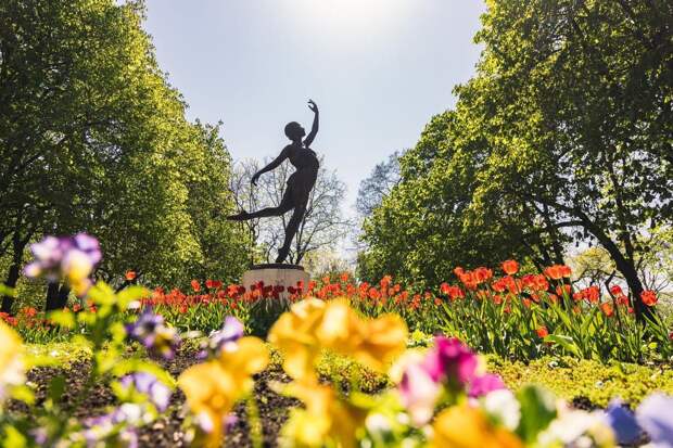 Декоративные скульптуры перед Московским государственным детским музыкальным театром, 1980 год. Впрочем, они не пропали. Их отреставрировали в 2023 году, когда полностью обновляли парк 40-летия ВЛКСМ — объект культурного наследия регионального значения.