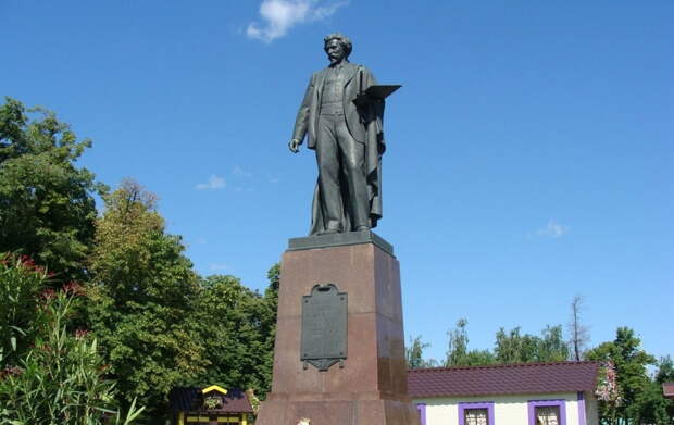 На его постаменте высекли 4 стихотворные строчки из "На взятие Измаила" (1790 год), про город на терр.совр. Одесской области. Да вот казус!