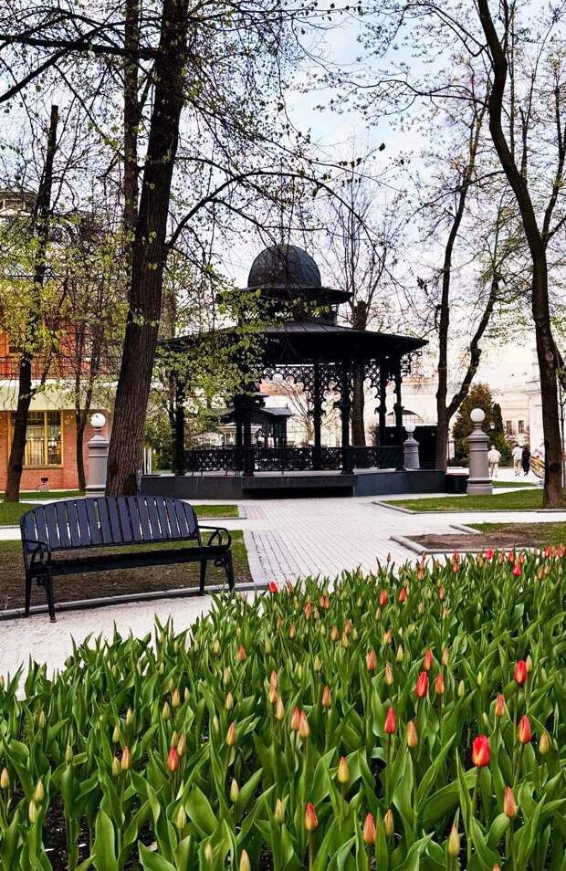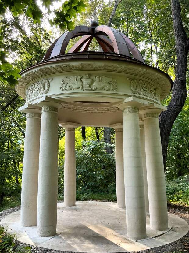 Тут две беседки-ротонды, грот, который снимался в фильме «Покровские ворота», и скульптуры. Парк постепенно приводят в порядок. Он позволяет представить, как выглядела Москва два столетия назад.
