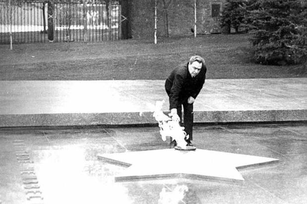 Леонид Брежнев зажигает Вечный огонь. 8 мая 1967 года. Источник