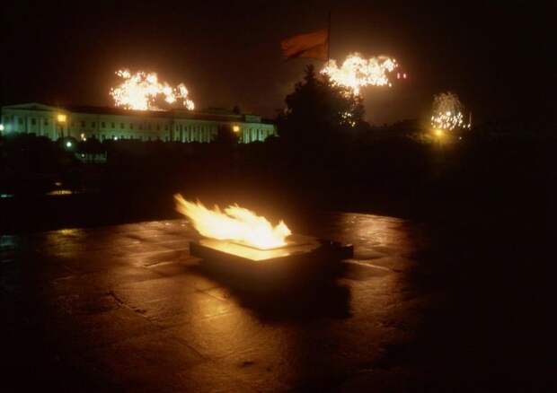 Марсово поле. Вечный огонь и салют. Фотограф Всеволод Тарасевич. 1980‑е годы. Источник
