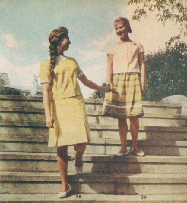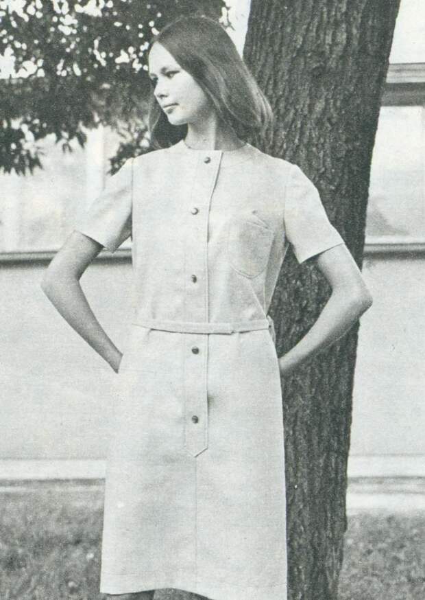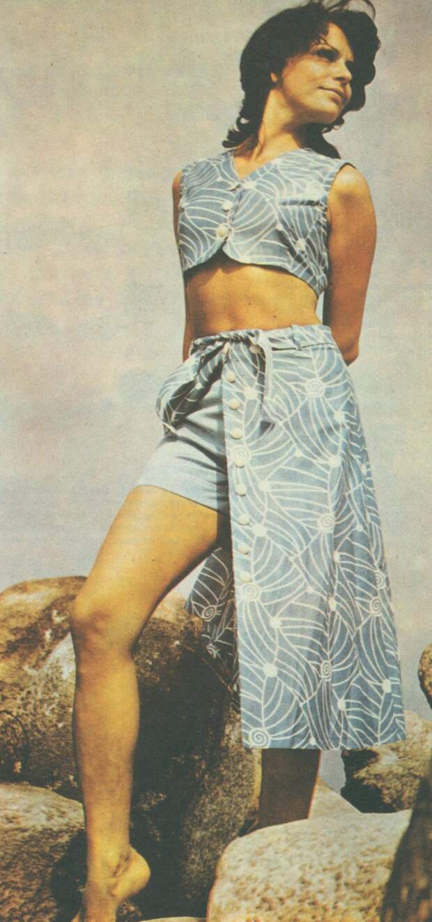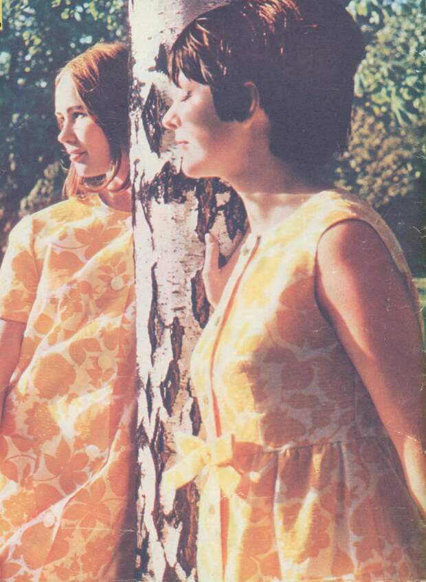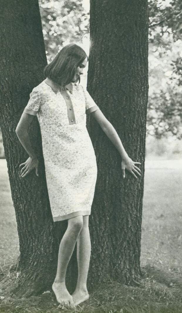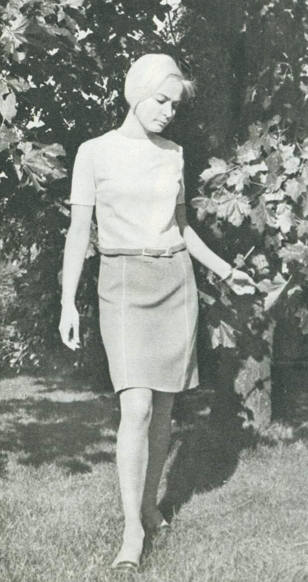 Конец десятилетия — время моды на мини. Девушки носили юбки и платья выше колена на 10–20 сантиметров. Купить короткую юбку в СССР было проблемой, поэтому зачастую женщины просто обрезали и подшивали подолы покупных изделий.