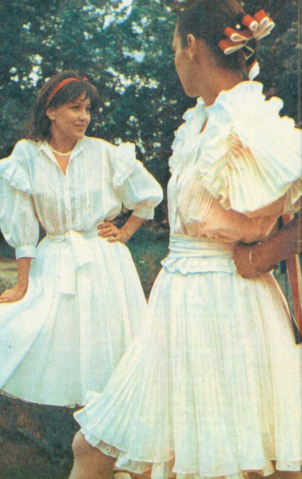 В следующем десятилетии вернулась мода на кружевные платья с рукавами-буфами и широкими поясами, а также элегантные шляпки, блузы с короткими рукавами и мини-юбки. Эти образы прекрасно иллюстрировали новую, смелую и немного агрессивную женственность 1980‑х годов.