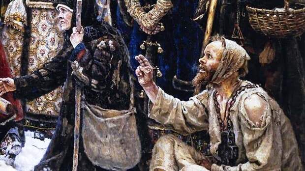 Перед императором и императрицей бывали и более «юродивые» лица. Однажды им представили слабоумного Митьку Колябу. Он был инвалидом от рождения: хромым, глухим и с культями вместо рук.