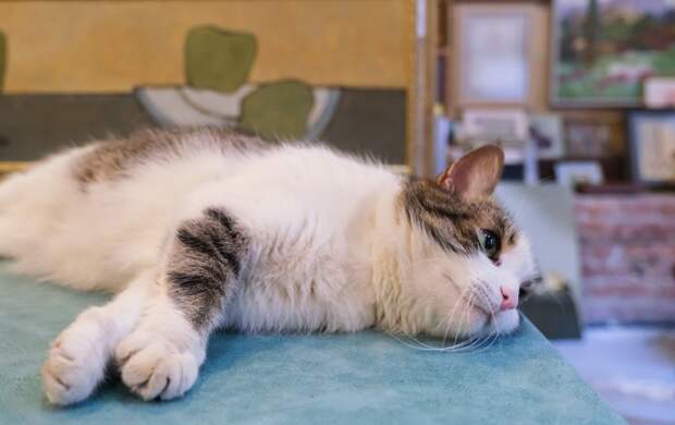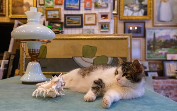 В багетной мастерской на Васильевском острове живёт милая кошка Дусенька