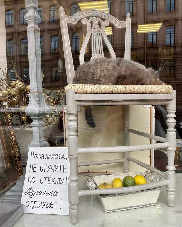 Петербуржцы обожают кошку и тщательно оберегают ее отдых. А она в свою очередь заряжает прохожих позитивом!