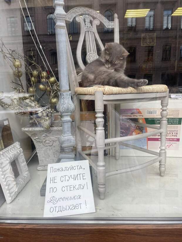 Замечательная кошечка по имени Муся работает в одном из швейных магазинов Петербурга