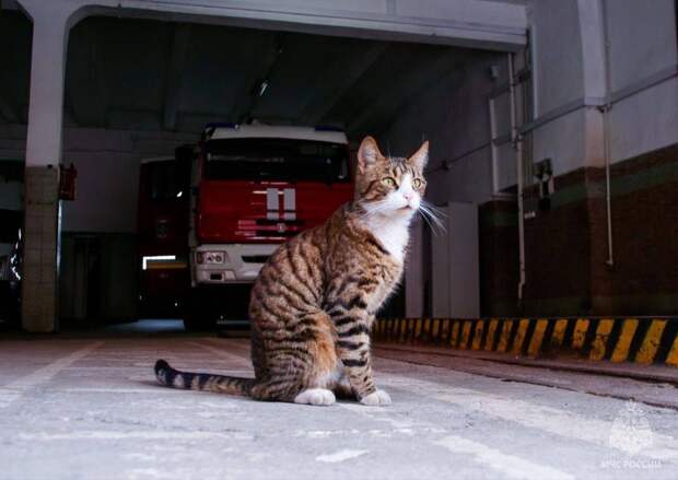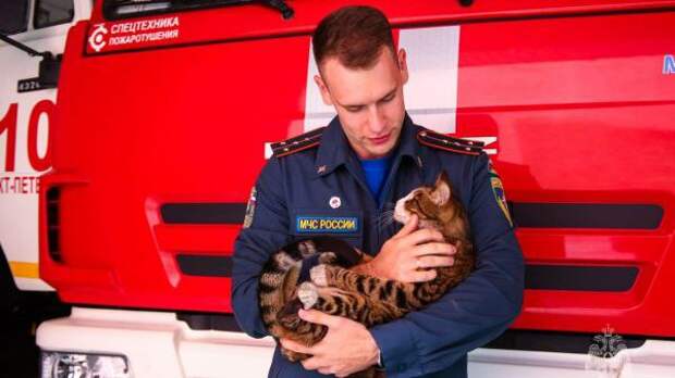 Кота Игоря показала команда 10-й пожарно-спасательной части МЧС Петербурга в честь Всемирного дня кошек