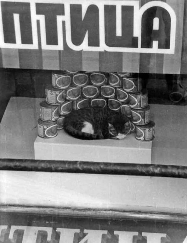 На витрине продовольственного магазина в Ленинграде, где-то 1980-е годы