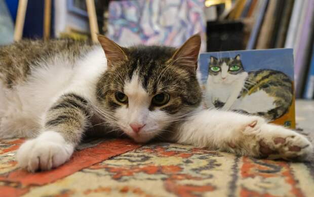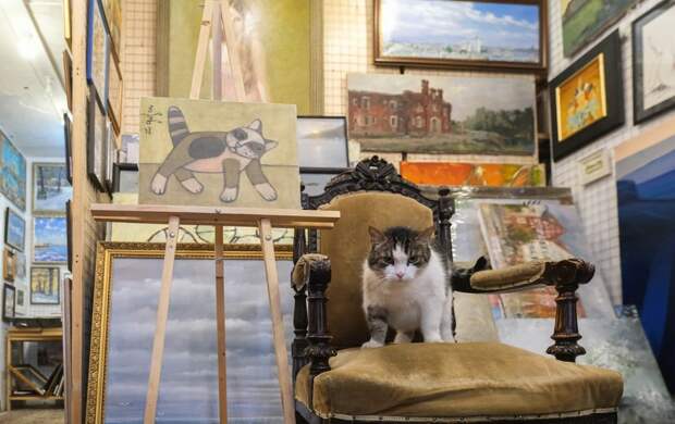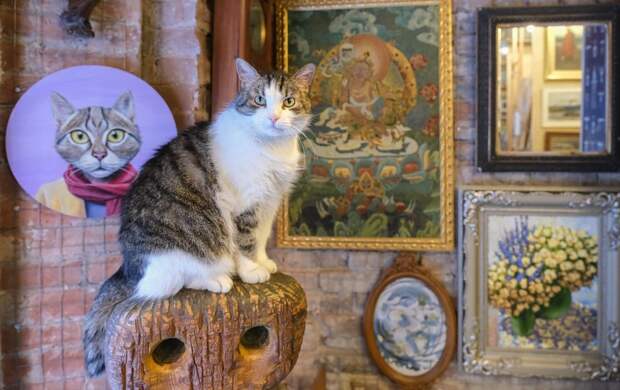 В народной галерее "Мансарда художников" на Петроградской стороне собраны тысячи картин. И несколько десятков посвящены сотруднику галереи – коту. Его приходят рисовать в "Мансарду", фотографируют и пишут картины дома.– Однажды кто-то открыл входную дверь и швырнул нам котёнка, – рассказывает художник Юрий Потапов.