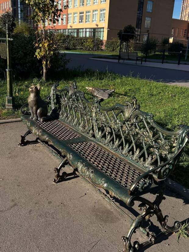 Эта милая скульптура поднимает настроение жителям и просто проходящим мимо людям. А находится она во дворе около школы на ст. м. Парнас.