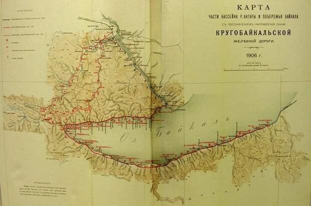 Сохранилась и карта самой Кругобайкальской ж\д образца 1906 годаНепростым заданием было и построить мосты с путями в столь сложных условиях. Поэтому строителям приходилось прилагать неимоверные усилия, а весь период возведения, разделившись на два этапа в общей сложности занял тринадцать лет.
