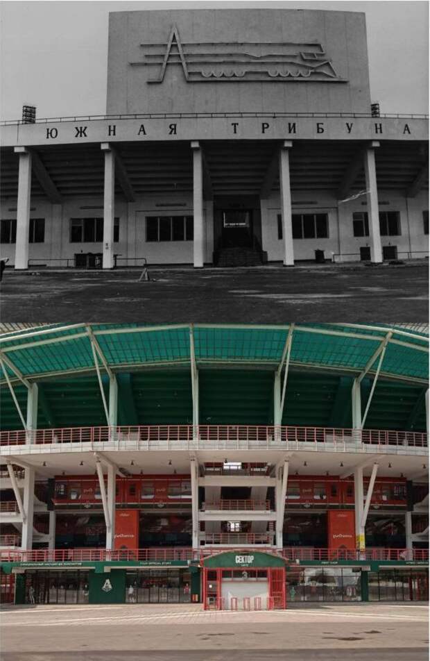 Чёрно-белая фотография Южной трибуны была сделана в том же 1966 году, сразу после открытия. Посмотрите, какой великолепный логотип был у «Локомотива», в виде мчащегося паровоза.