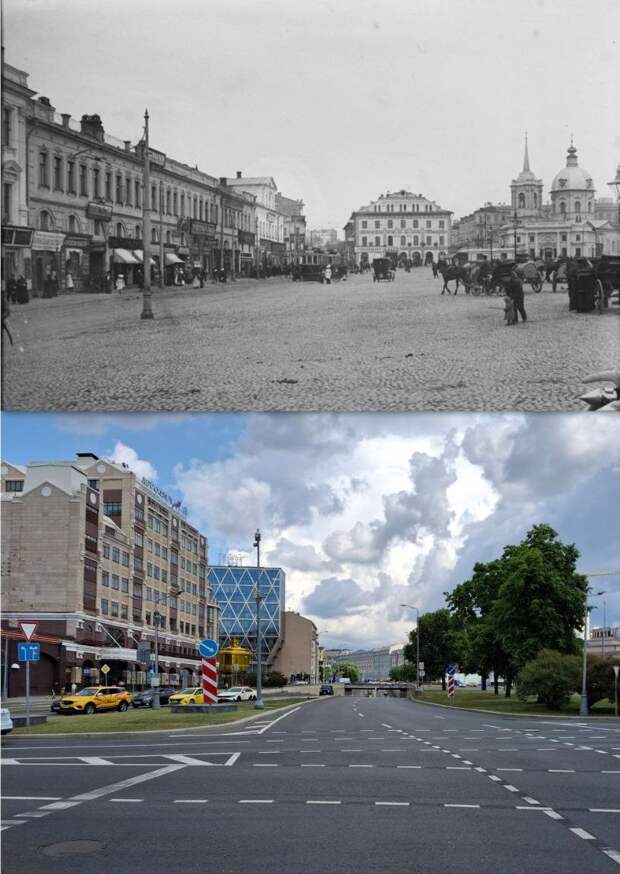 Автор чёрно-белого снимка Александр Александрович Губарев. Обе фотографии сделаны с одной точки с разницей 113 лет.