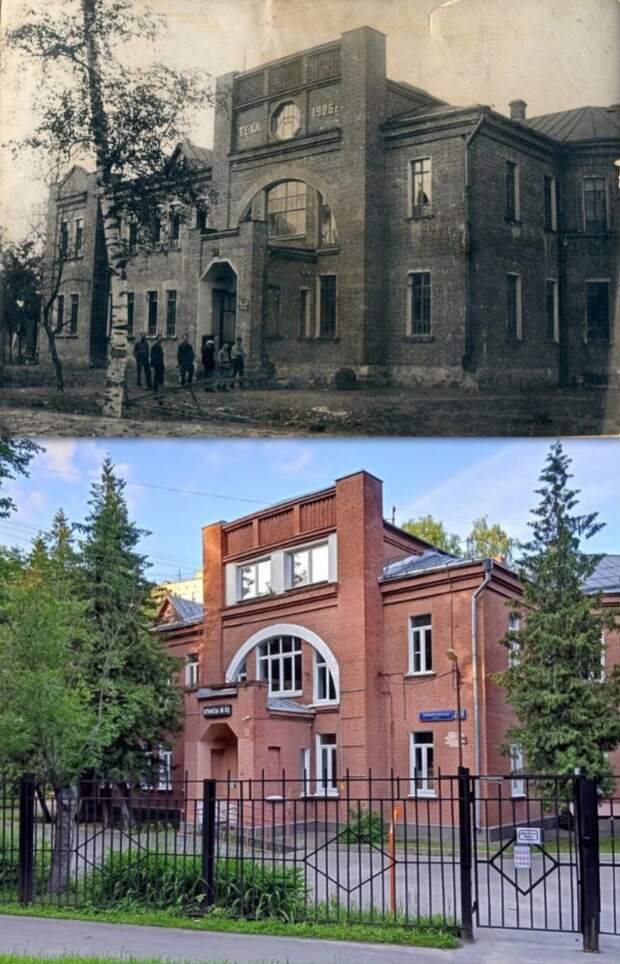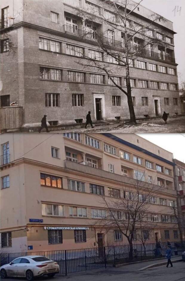 Если присмотритесь к чёрно-белому кадру, то заметите на фронтоне, по бокам арочного окна дату 1926 и аббревиатуру Т.С-Х.А. Говорят, что Карл Карлович первым использовал это сокращение для названия академии. К сожалению на 28-м здании надпись не сохранилась, но уцелела на соседнем 26-м корпусе. В этом здании уже много лет размещается Дом детского творчества «Гермес». Соседний дом пустует. В следующем году оба корпуса отметят столетний юбилей.