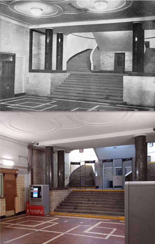 Вестибюль станции метро «Парк культуры» в 1935 году. Проектное название станции «Крымская площадь». Она была открыта 15 мая 1935 года в составе первой очереди. В некоторых московских справочниках 1936 года станция указывалась как «Крымская площадь».