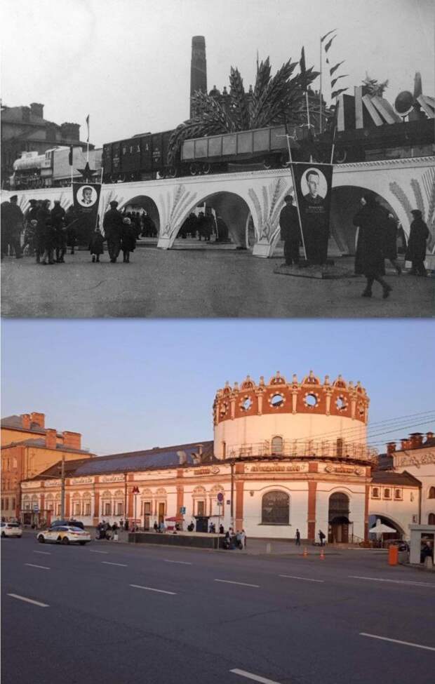 Всё это исчезло в 1934 году.А что сохранилось? Во-первых, наземный вестибюль станции метро «Дзержинская площадь» (ныне «Лубянка») размещается в первых двух этажах старинного четырёхэтажного здания. На чёрно-белом снимке оно хорошо видно за Китайгородской стеной.