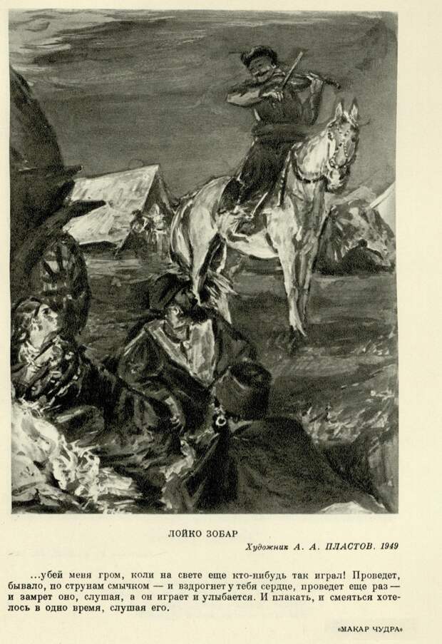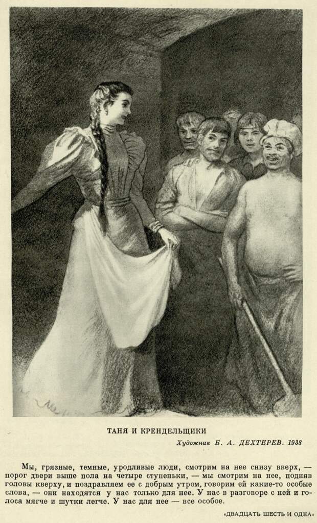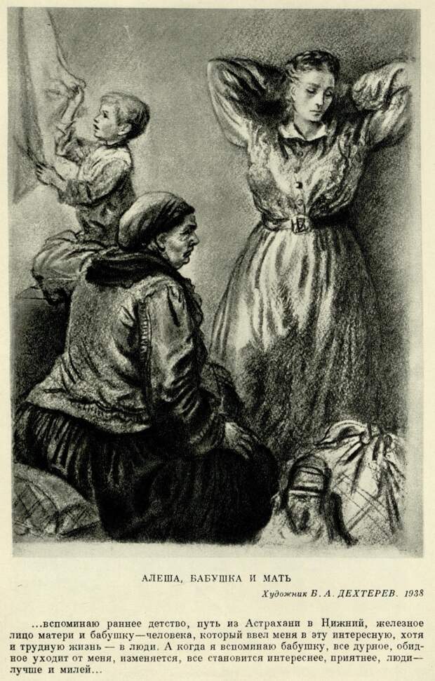 Понятен поэтому тот огромный интерес, который проявляется со стороны самых широких кругов зрителей и читателей к иллюстрациям в книгах Горького и к отдельным циклам этих иллюстраций, показанным на выставках и в музеях.