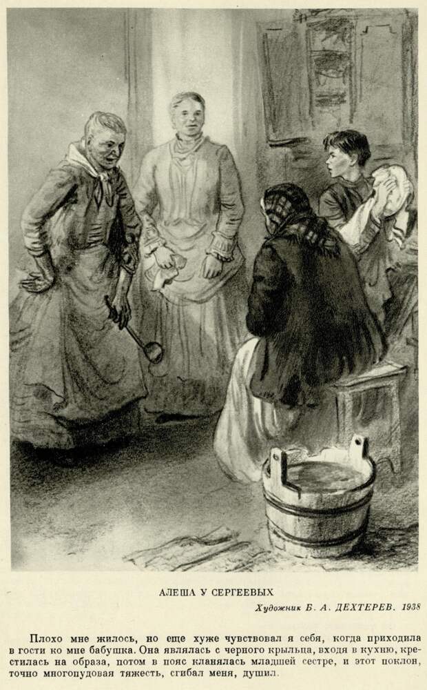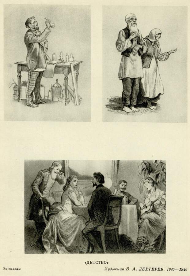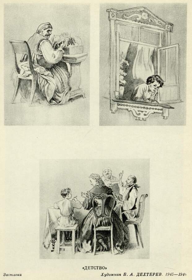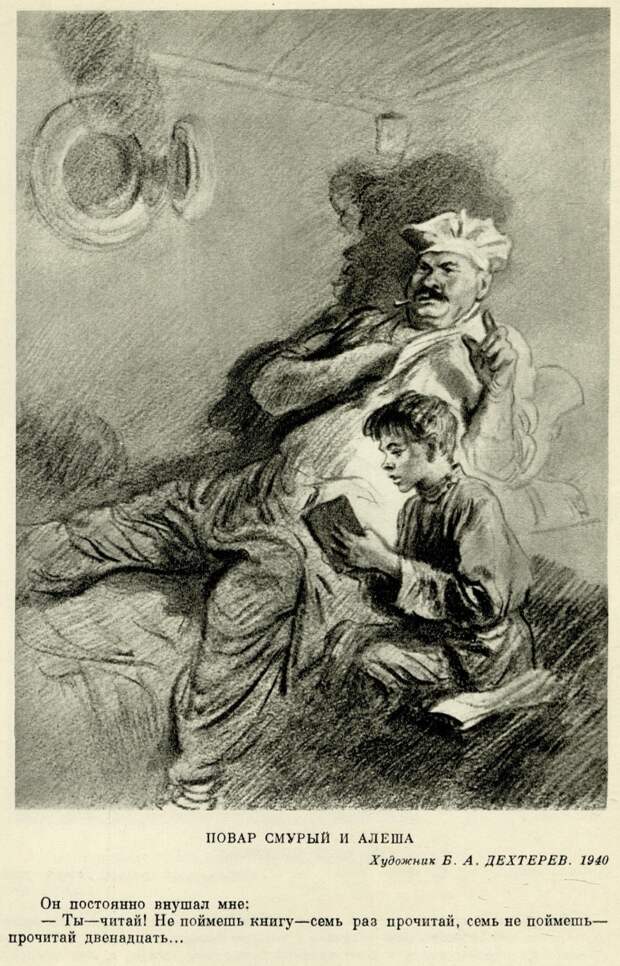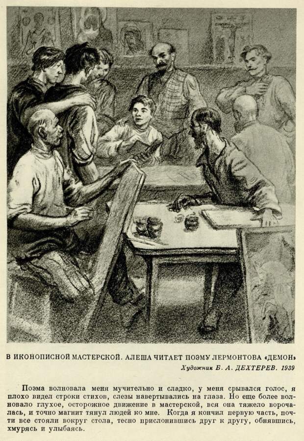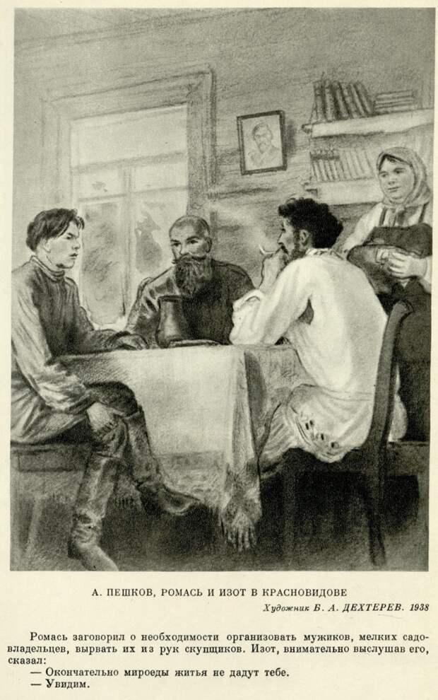 Если Иогансон и С. Герасимов подошли к иллюстрированию Горького уже вполне сложившимися мастерами, то для художников Кукрыниксы, Шмаринова и Дехтерева эта творческая встреча с героями Горького была началом их большого пути в области книжной графики. Шмаринову, Дехтереву и Кукрыниксы выпало счастье слышать советы и указания самого А. М. Горького в период их работы над иллюстрациями к его произведениям. Эти советы во многом способствовали раскрытию в их рисунках замысла писателя, главной идеи, пронизывающей его повести и рассказы.