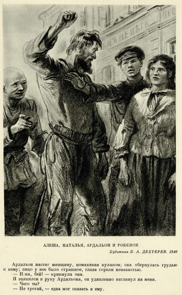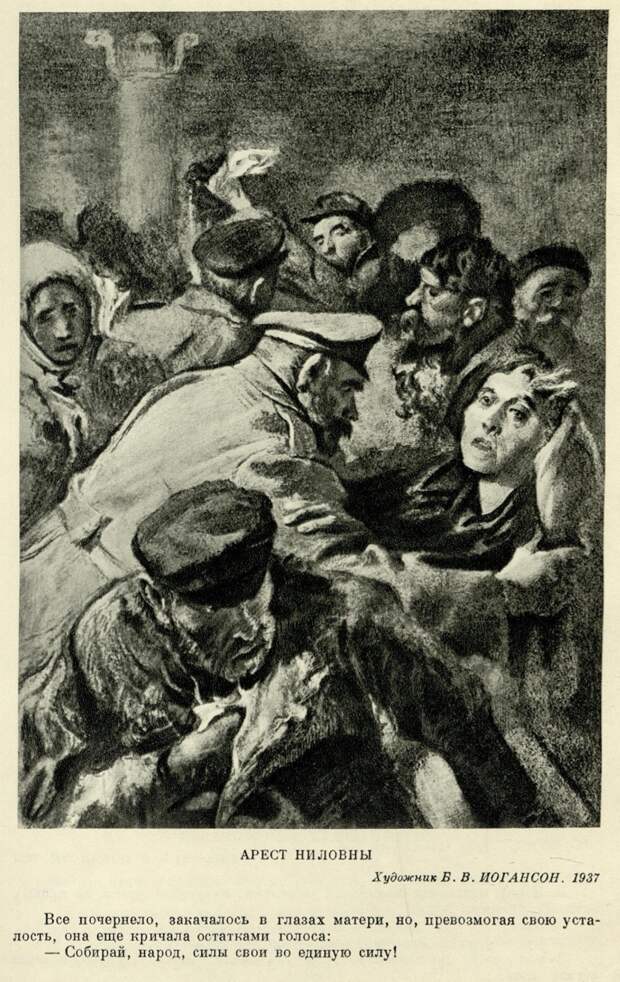 В истории борьбы за утверждение метода социалистического реализма в иллюстрации к советской книге работы художников, воплощавшие образы литературных героев Горького, явились решающими для становления реалистической иллюстрации, преследующей прежде всего полноту психологических характеристик, проникновение в идейную сущность литературного произведения и законченность в трактовке персонажей.