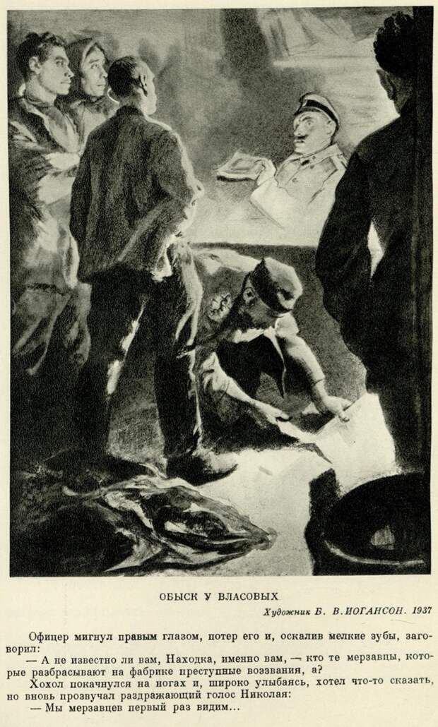 В тридцатых годах появились первые иллюстрации к Горькому, из которых многие были еще несовершенны, но уже твердо стояли на почве реализма. В течение двух последующих десятилетий талантливая плеяда мастеров советской книги в условиях общего роста и подъема искусства, сумела в значительной степени ответить на высокие требования народа к искусству.