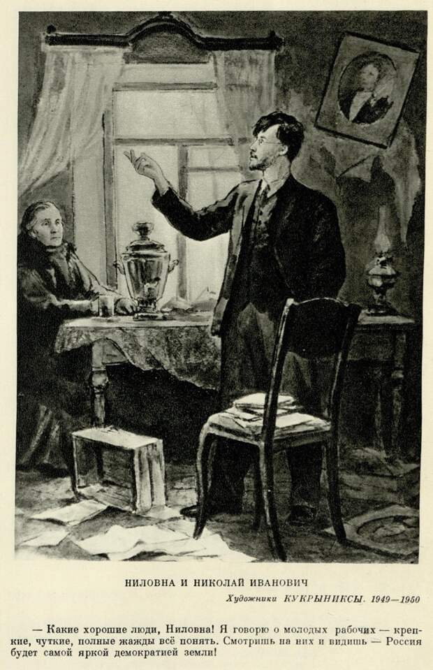 На всем пути развития и роста советской книжной графики ведущая роль принадлежит иллюстрациям к произведениям А. М. Горького. Глубокая жизненная правда творений Горького — основоположника социалистического реализма, внутренняя мощь, многогранность и духовное богатство созданных им образов, пафос высоких мыслей и чувств, яркость и типичность представителей борющихся классов дореволюционной России вдохновляют несколько поколений советских художников.