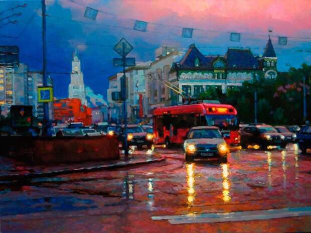 Сухаревская площадь в лиловых тонах» (художник - Сергей Волков)