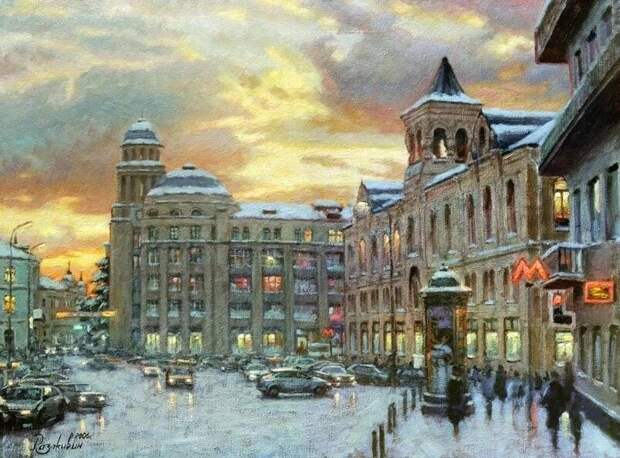 «Ночные огни. Кропоткинская» (художник - Анна Чарина)