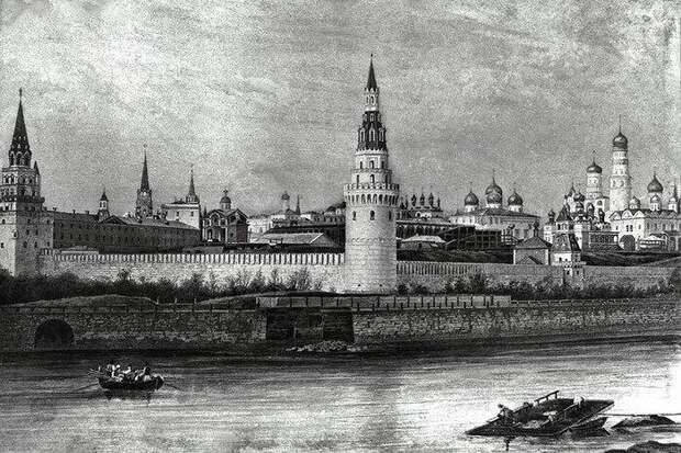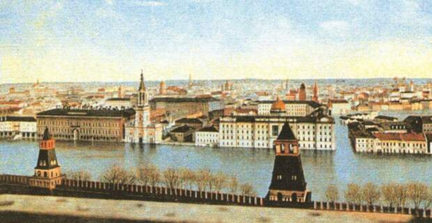 На фотографии виден начальный этап строительства Большого кремлевского дворца, которое завершится только в 1849 году.