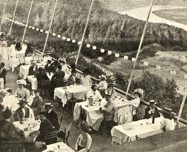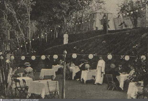Для развлечения посетителей предлагалась музыкальная программа: один из лучших в Москве эстрадный оркестр под управлением Г.Р. Стангалю, русский, украинский и цыганский хоры, исполнявшие народные песни, выступления танцовщиц и иллюзионистов. При ресторане Крынкин построил собственную электростанцию, и по вечерам ресторан парил над Москвой, залитый огнями, как волшебное видение.