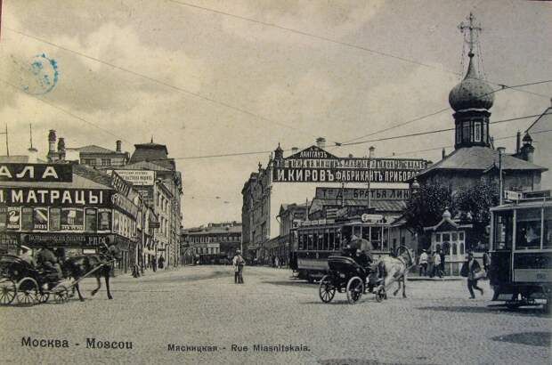 Мясницкая улицаВ середине 19 века Мясницкая улица была настоящим центром алкогольной жизни Москвы. Все дело в том, что в 1872 году здесь находилось 4 завода, которые занимались производством хлебного вина, что сейчас мы бы просто назвали водкой. При заводах же были и магазины с произведенной продукцией.