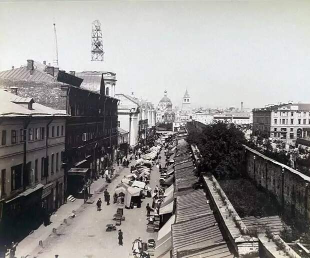 У Верхних торговых рядов, вид на Ильинку со стороны Старой площади, 1886