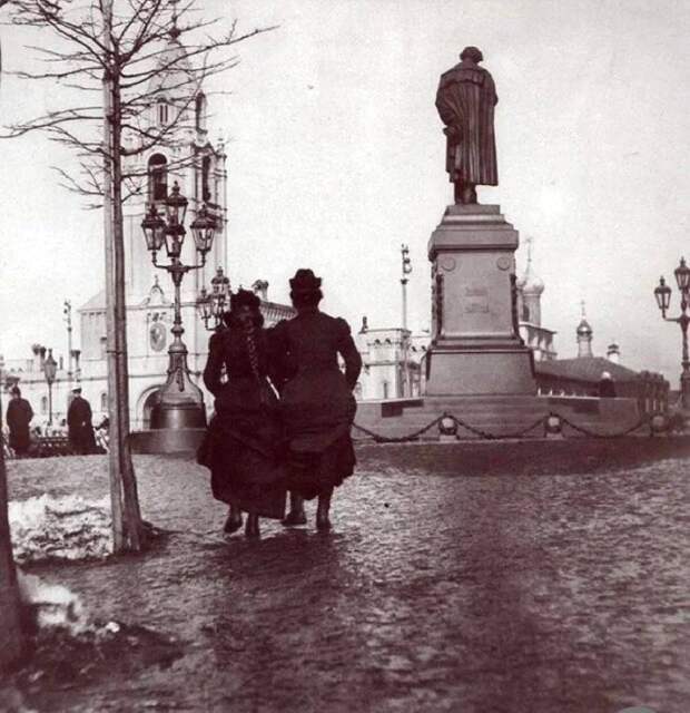 У памятника Пушкину на Тверском бульваре, 1900